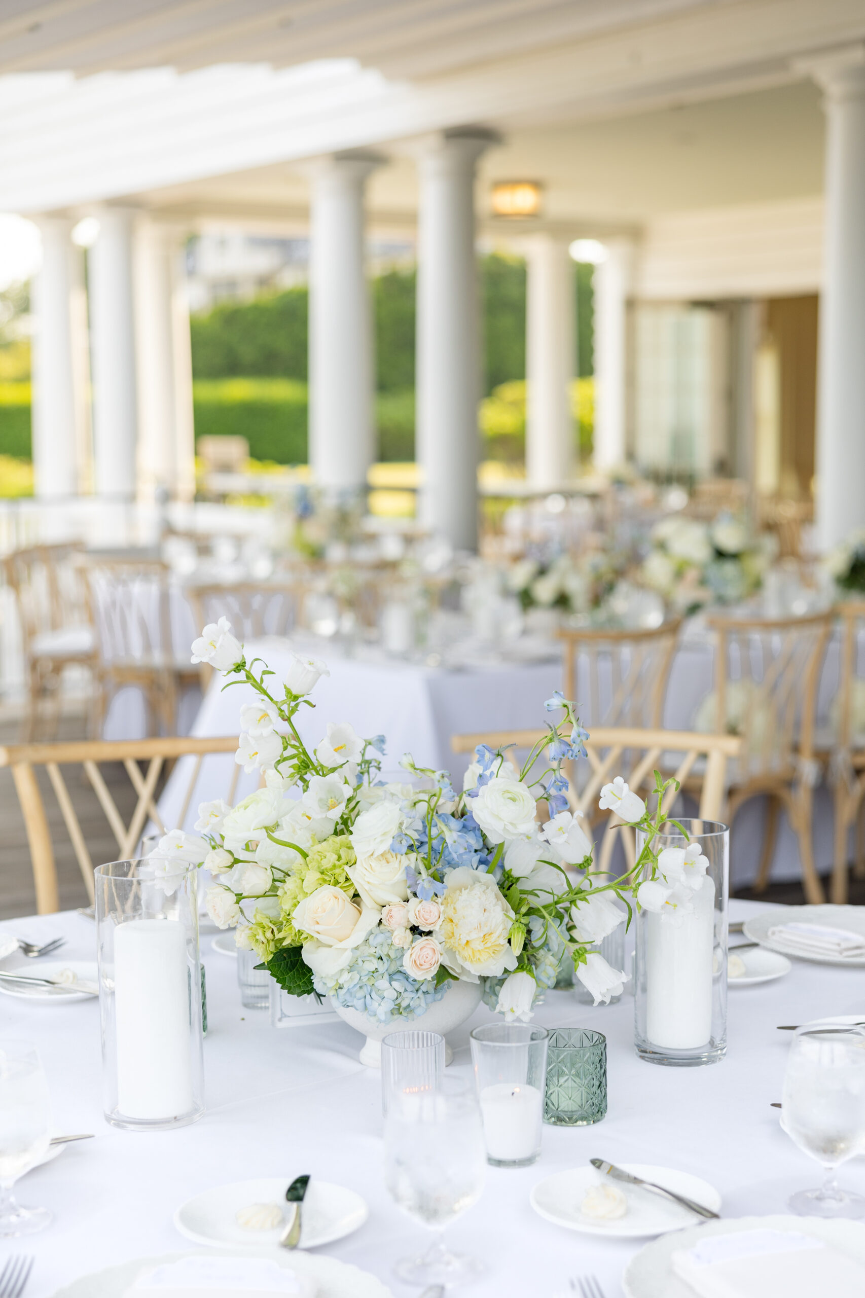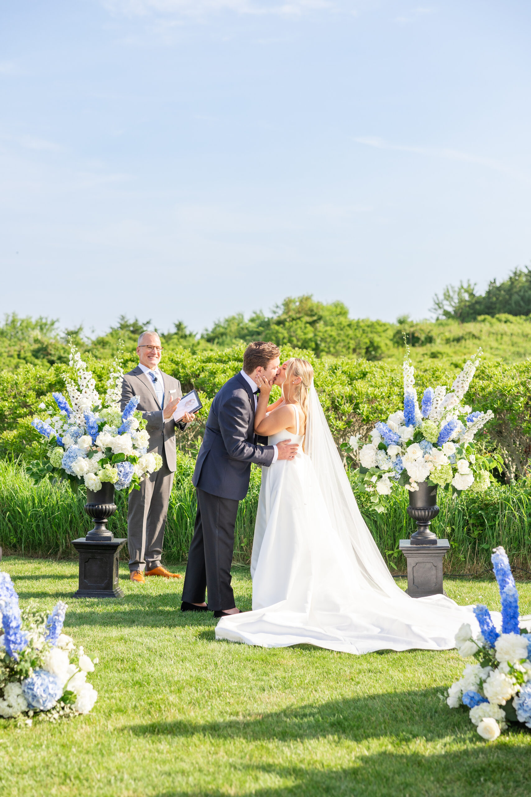 The Ocean House is known for its sweeping ocean views and classic New England charm, making it the ideal backdrop for Kaitlyn and Billy’s timeless summer wedding. Their ceremony took place on the East Lawn, framed by manicured greens and the Atlantic shimmering beyond. The bride looked radiant in her classic gown, surrounded by an all-white floral design that let the beauty of the setting shine.