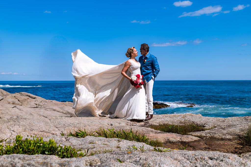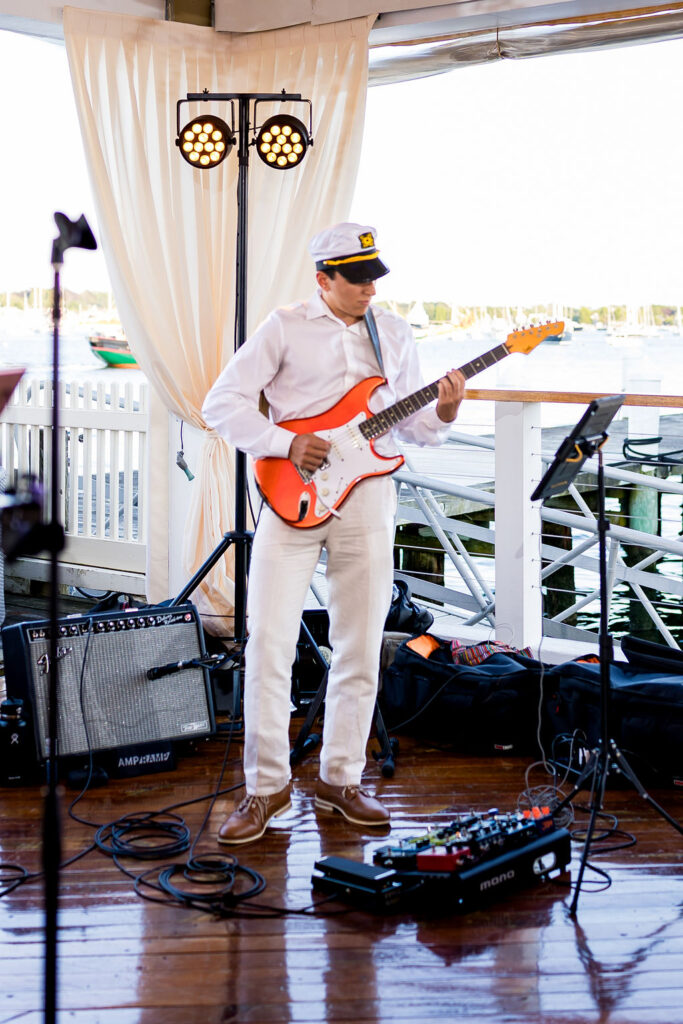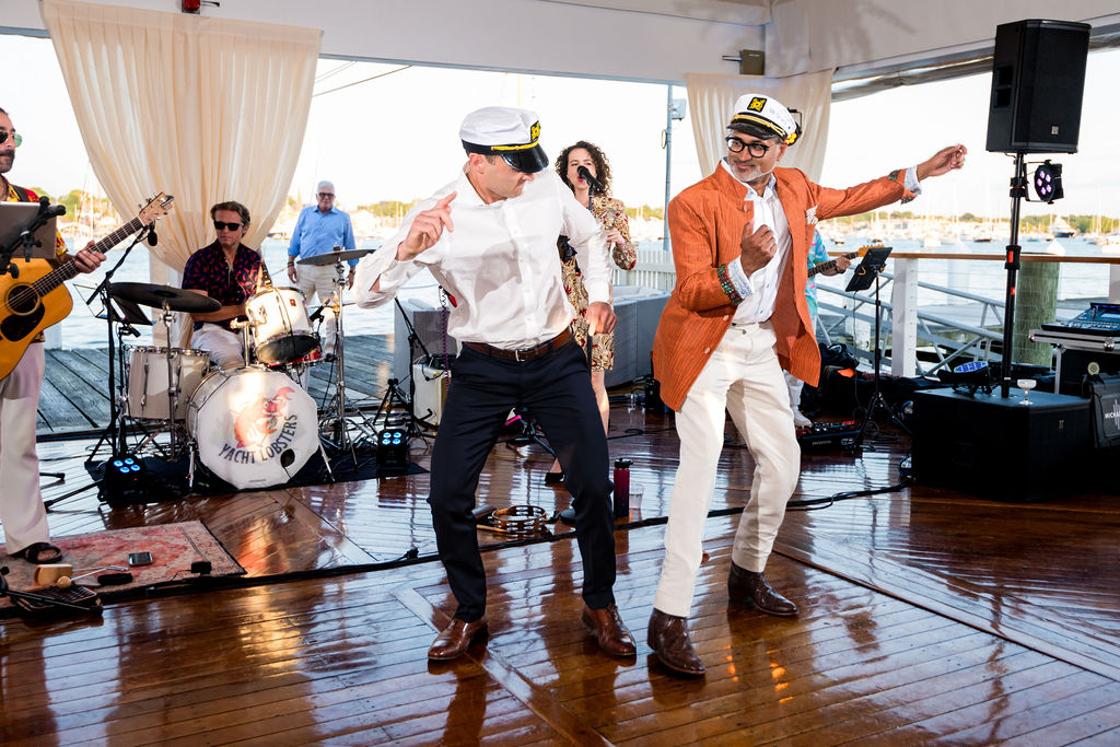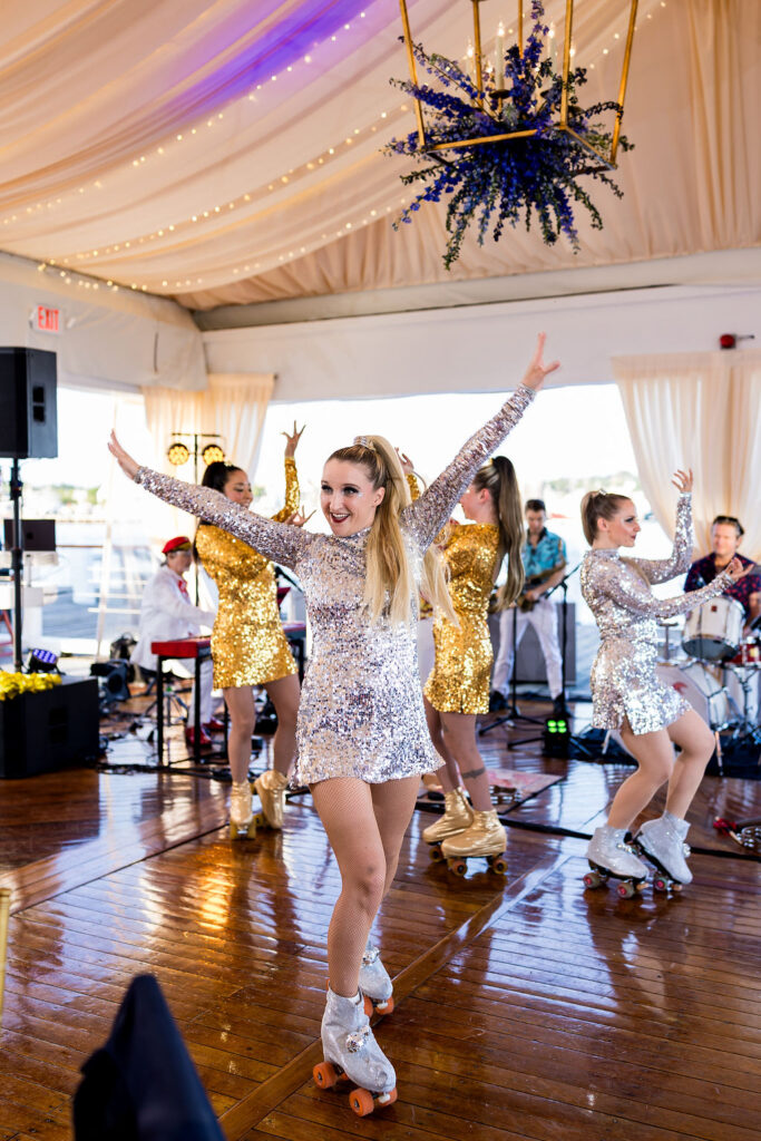 Dinner featured a classic New England lobster boil buffet, served with seaside views and accompanied by lively performances from family and friends. Two live bands kept the energy high. The dance floor was officially opened with an amazing roller-skating dance performance by Fluxion Entertainment that got everyone cheering.